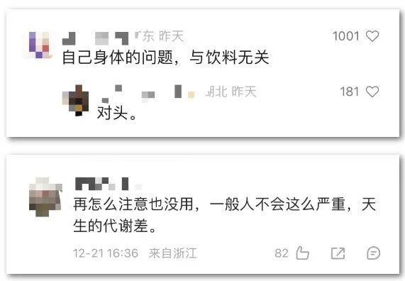 热搜引起了许多网友的关注,其中,多数网友认同“饮料不可多喝”,也有人“痛批”饮料的危害;但也有评论认为“与饮料无关”,主要是自身代谢的问题。